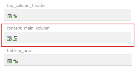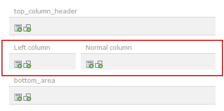 Προκειμένου να αναθέσετε σε μία σελίδα (μέσα από το περιβάλλον διαχείρισης του Typo3) την παραπάνω μορφή περιεχομένου (2 στήλες, μία στενή στο αριστερό άκρο και μία κύρια στα δεξιά), από το δέντρο των σελίδων επιλέξτε την σελίδα που θέλετε (σε page mode) και στη συνέχεια πατήστε Edit. Από τις διαθέσιμες καρτέλες επιλέξτε την καρτέλα Appearance και μετά επιλέξτε την κατάλληλη μορφή περιεχομένου από το πεδίο Backend Layout (this page only). Στην προκείμένη περίπτωση επιλέξτε TMPL1 Main 2 column και στη συνέχεια αποθήκευση και κλείσιμο. Ο διαχειριστής που θα επιχειρήσει να εισάγει περιεχόμενο στη συγκεκριμένη σελίδα θα έχει πλέον στη διάθεσή του τις στήλες που φαίνονται στην παρακάτω εικόνα.