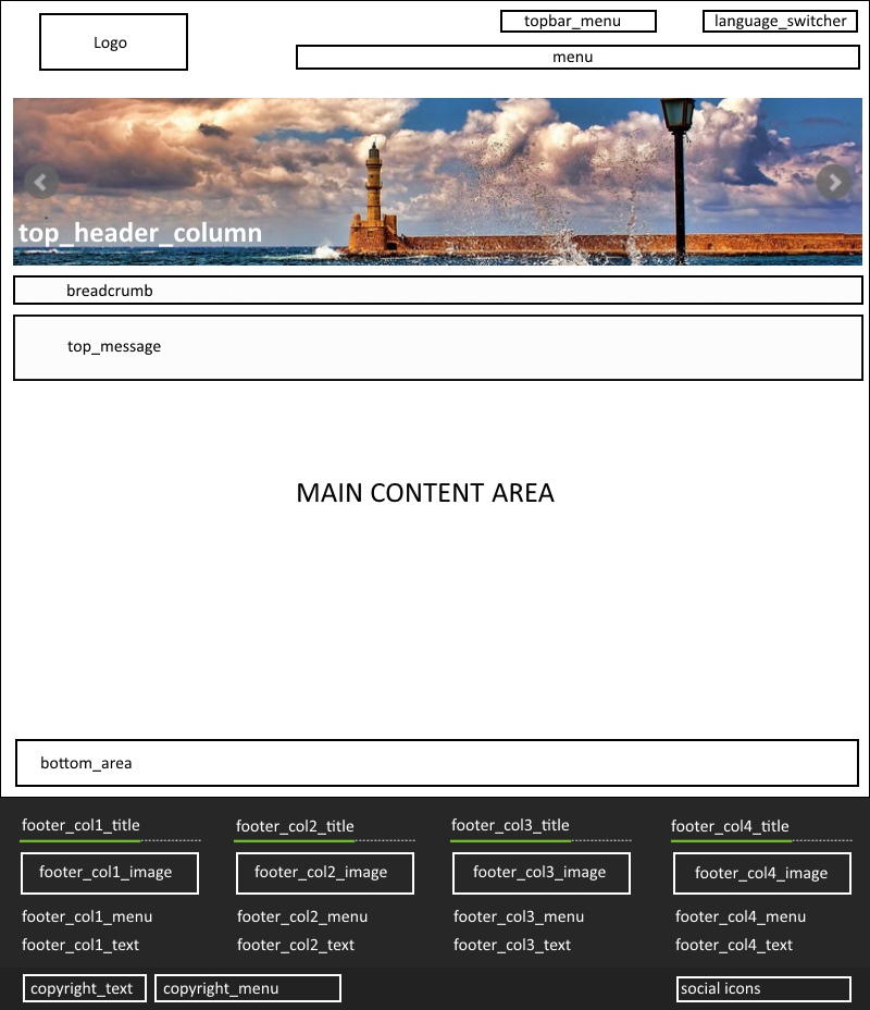 Στην εικόνα που ακολουθεί φαίνεται η βασική δομή του Template Demo template2.